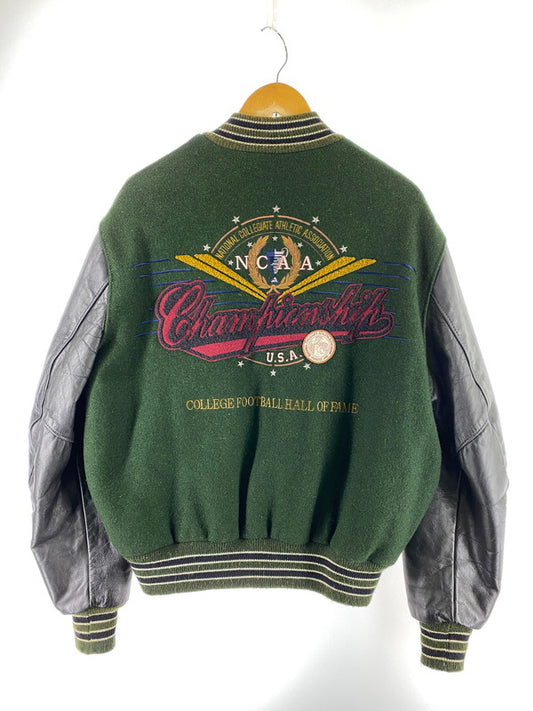 【中古品】【メンズ】 DE LONG デロング ウール 袖革スタジャン 80S USA製 80年代 アメリカ製 ヴィンテージ スタジアムジャケット メンズ アウター 146-251205-em-38-min サイズ:44 カラー:グリーン/ブラック 万代Net店