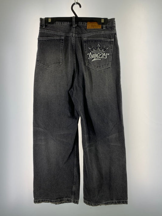 【中古品】【メンズ】 9090 ナインティナインティ KING LOGO DENIM PANTS デニムパンツ ボトム 153-251118-AS-11-min サイズ:L カラー:ブラック 万代Net店