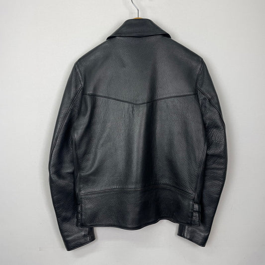 【中古品】【メンズ】 Lewis Leathers ルイスレザー × THE REAL McCOY'S リアルマッコイズ 別注 コラボ DEERSKIN LIGHTNING DOUBLE RIDERS JACKET ディアスキン ライトニング ダブル ライダースジャケット ライトアウター 145-251204-yy-16-tei サイズ:38 カラー:ブラック 万代Net店
