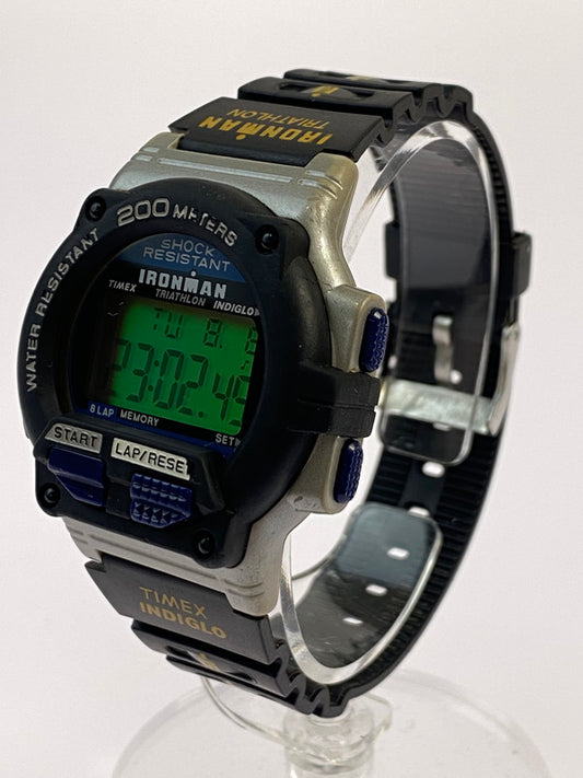 【中古品】【メンズ】 TIMEX タイメックス 90S"IRONMAN INDIGLO TRIATHLON SHOCK RESISTANT"デジタル クォーツ腕時計 197-240812-AS-16-min カラー:ブラック ブルー/ブラック系文字盤 万代Net店
