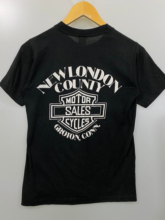 【中古品】【メンズ】 SPORTSWEAR HARLEY-DAVIDSON 70-80's NEW LONDON COUNTY TEE スポーツウェア ハーレーダビットソン ショートスリーブTシャツ 半袖Tシャツ トップス 146-240807-yn-23-min サイズ:S カラー:ブラック 万代Net店