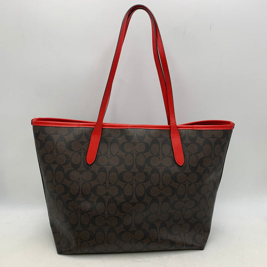 【中古品】【レディース】 COACH コーチ F5696 シグネチャー トートバッグ カバン 鞄 180-251125-as-34-izu カラー:ブラウン×レッド 万代Net店