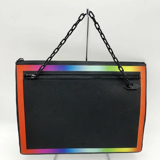 【中古品】【メンズ/レディース】 LOUIS VUITTON ルイ・ヴィトン M30347 クラッチバッグ タイガ ポシェット A4 セカンドバッグ レインボー 鞄 カバン 179-230424-ay-05-izu カラー:ブラック 万代Net店