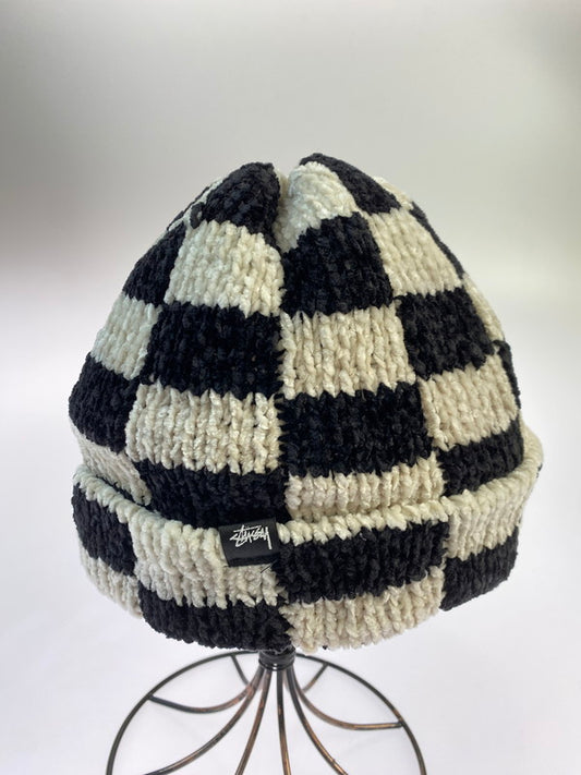 【中古品】【メンズ/レディース】 STUSSY ステューシー CROCHET CHECKERD BEANIE クロウシェイ チェッカー ビーニー ニット キャップ ハット 帽子 185-251024-em-09-min カラー:ブラック/ホワイト 万代Net店