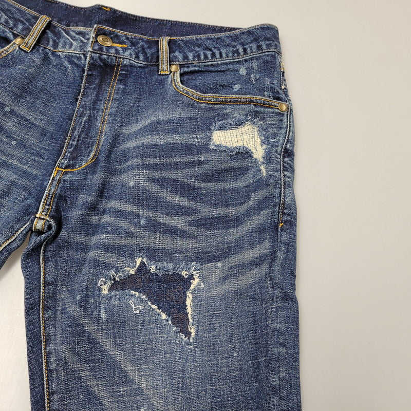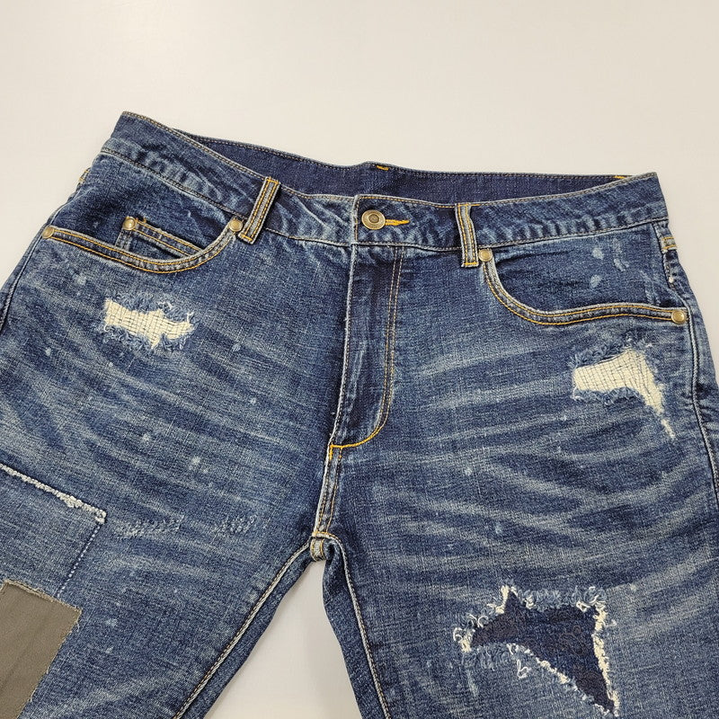 【中古品】【メンズ】 1piu1uguale3 RELAX ウノピゥウノウグァーレトレ リラックス LOGO APPLIQUE DISTRESSED DENIM PANTS USB-24008 ロゴ アップリケ ディストレスド デニムパンツ ジーンズ ボトムス 151-250508-as-14-izu サイズ:XXL カラー:インディゴ 万代Net店