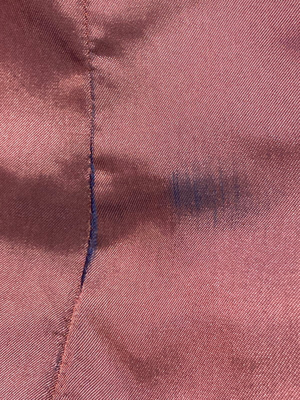 着用感があり、汚れ、ポケットにほつれ、シミ、スレなどのダメージが見られます。