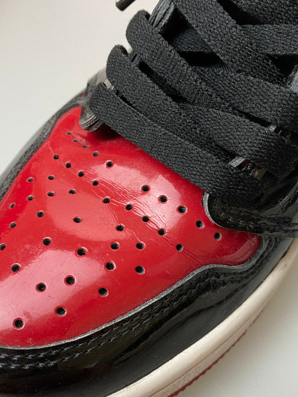 【中古品】【メンズ】 NIKE ナイキ AIR JORDAN 1 RETRO HIGH OG PATENT BRED555088-063 エアジョーダン1 レトロ ハイ オージー パテント ブレッド スニーカー 160-260114-jt-09-min サイズ:US 8.5 26.5cm カラー:BLACK/VARSITY RED-WHITE 万代Net店