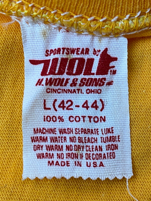 【中古品】【メンズ】 WOLF ウルフ 80S FLOCKY PRINT TEE Tシャツ トップス 146-250623-ks-21-min サイズ:L カラー:マスタード 万代Net店