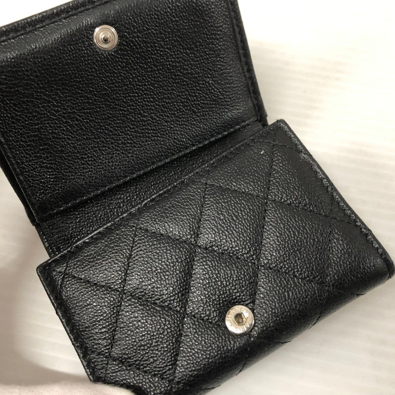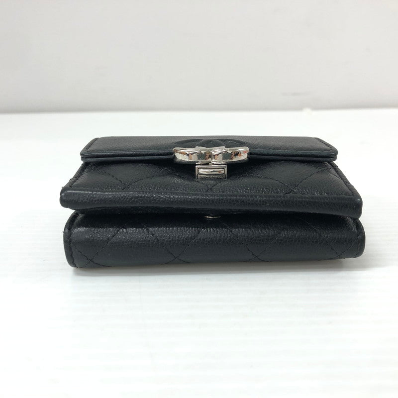 【中古品】【レディース】 CHANEL シャネル AP1175 ダブルココクリップ 三つ折り財布 グレインドカーフスキン マトラッセ ウォレット 財布 181-231130-ma-15-tei カラー:ブラック 万代Net店