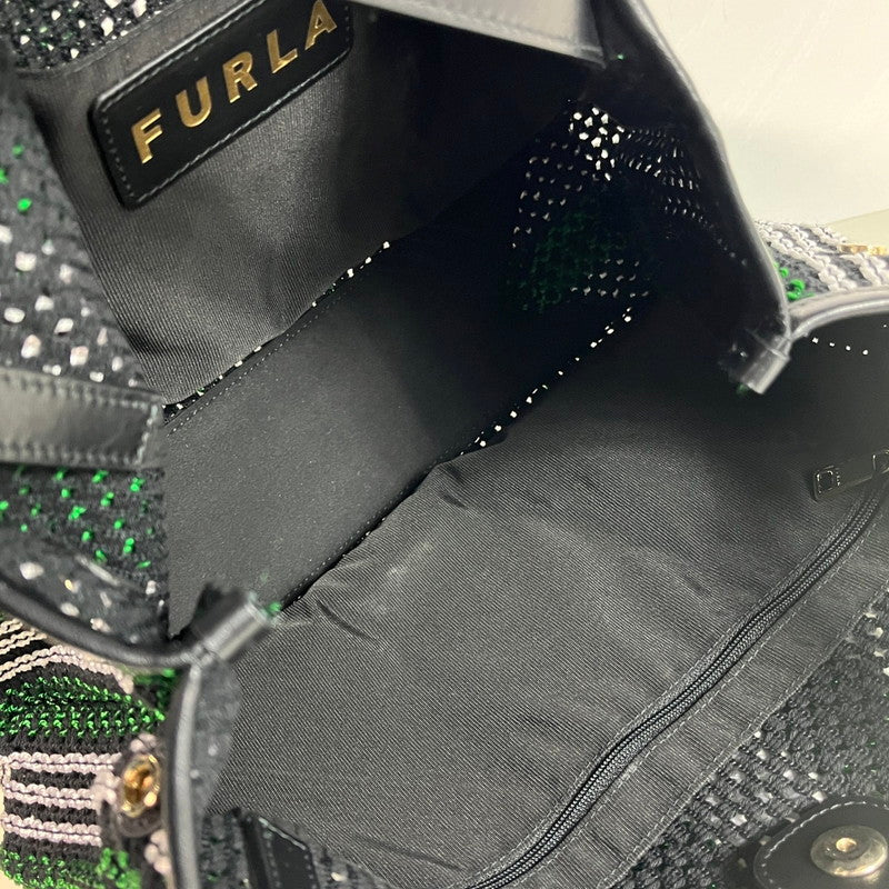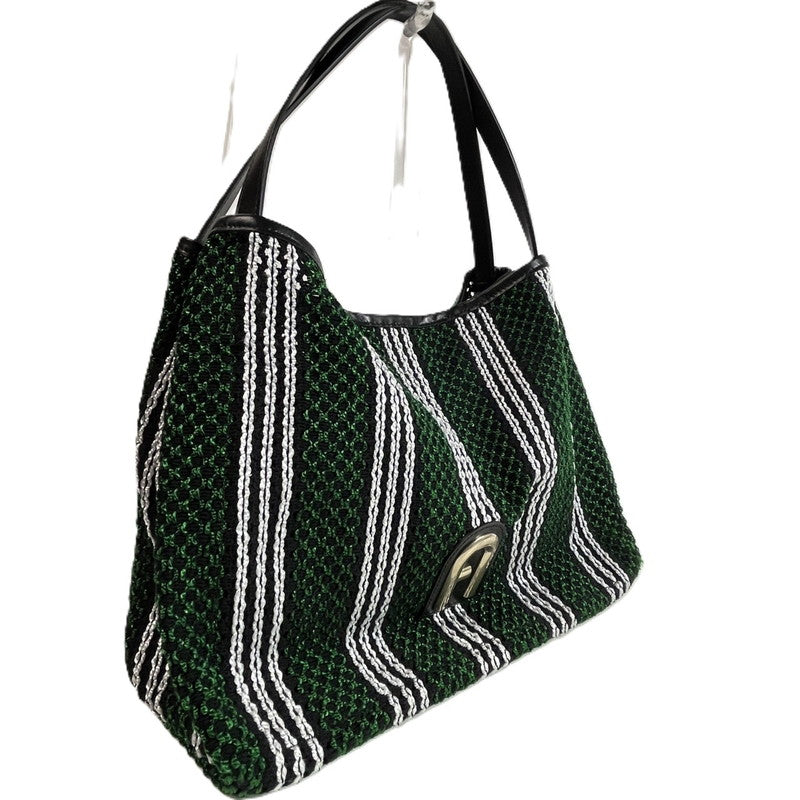 【中古美品】【レディース】 未使用品 フルラ トートバッグ WB00919 ストライプロープ プリムラ ホーボーバッグ L ソレントカーフスキン グリーン ストライプ メッシュ あみあみ 180-250608-SS-08-ich 万代Net店