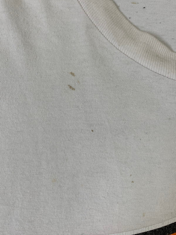 着用感があり、毛羽立ち、毛玉、スレ、プリント割れ、全体に汚れ、くすみ等がございます。